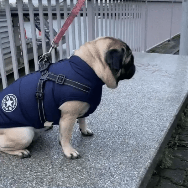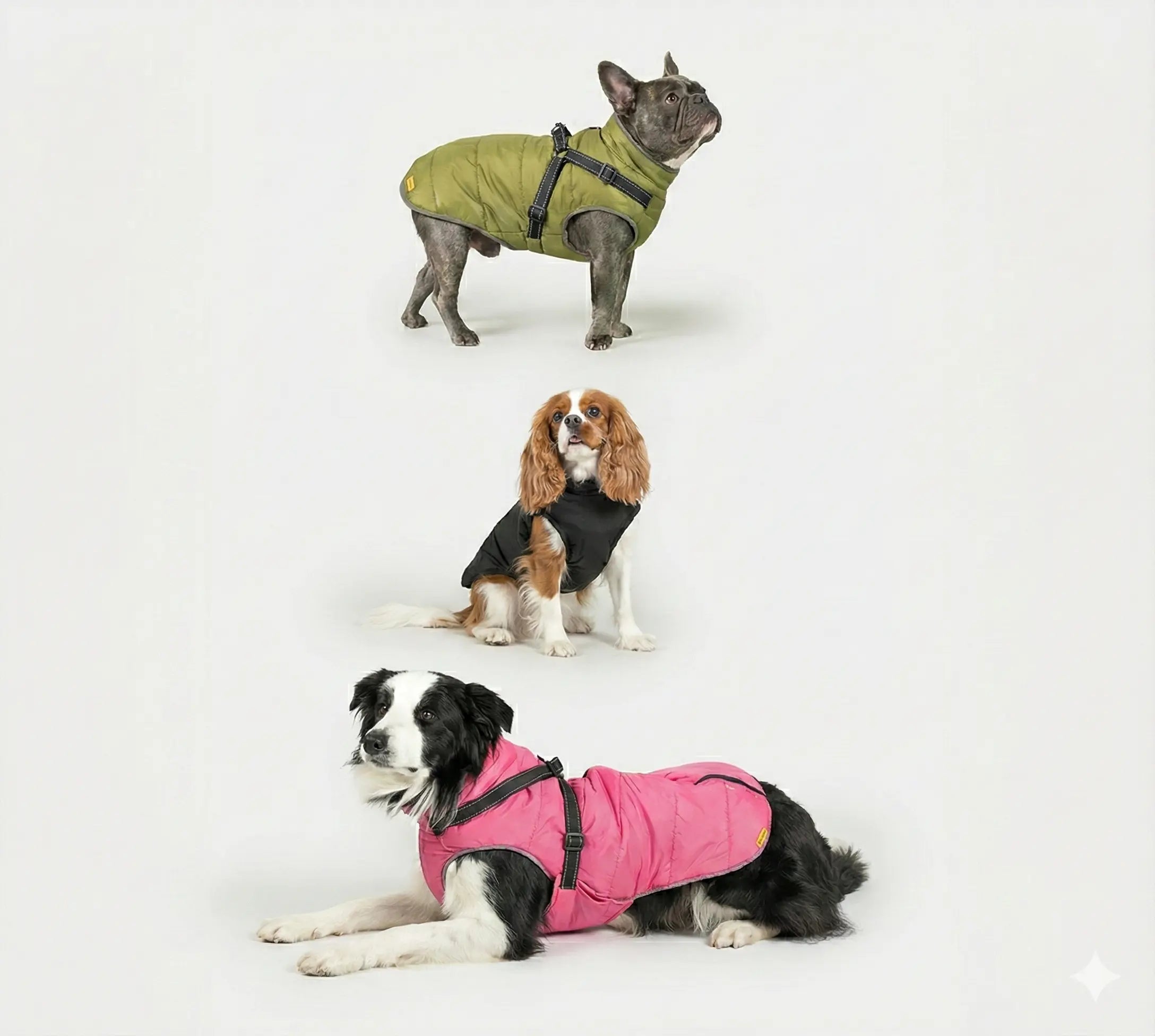 Deszcz, śnieg czy wiatr – Twój pupil pozostaje suchy. Zewnętrzna powłoka działa jak tarcza, a wysoki kołnierz chroni wrażliwą szyję przed zawianiem.